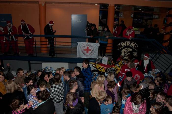 Akcja motomikołaje, gdzie motocykliści wręczają prezenty dla dzieci z domu dziecka w Zabrzu i Gliwicach