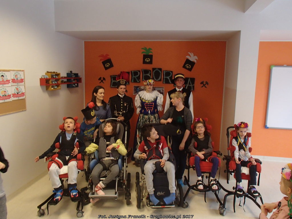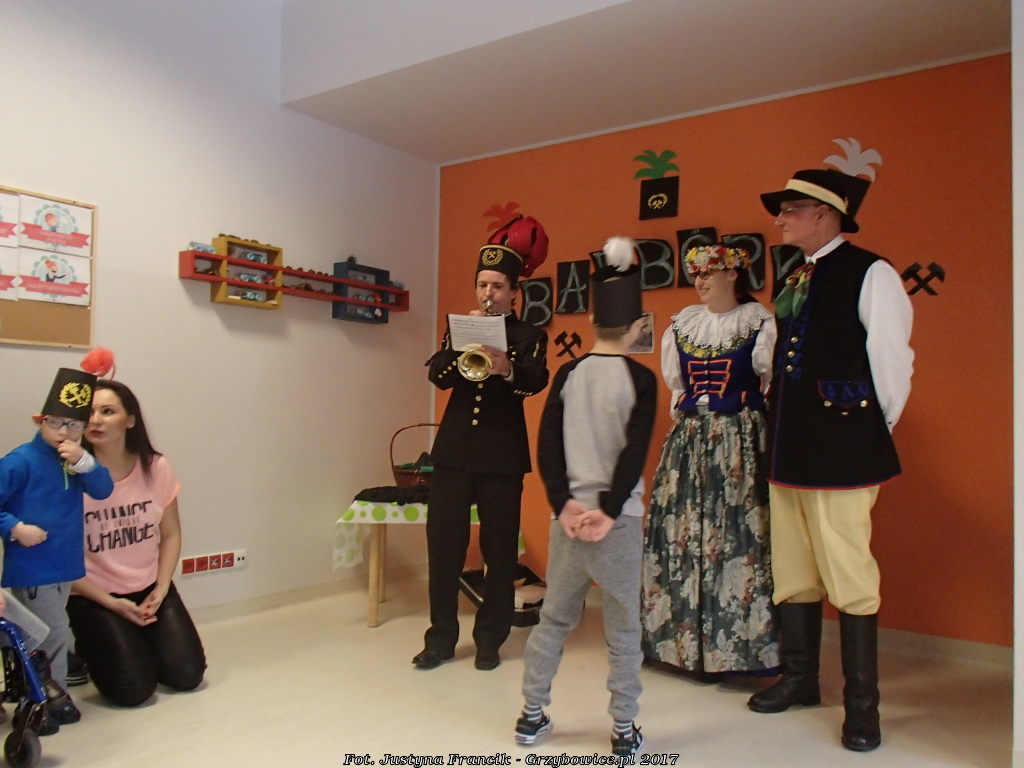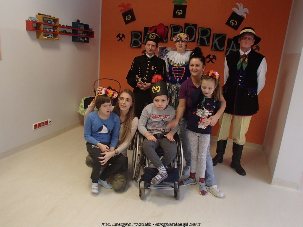 Delegacja z Grzybowic podczas barbórki odwiedziła dzieci z regionalnego ośrodka pomocy niewidomym i niedowidzącym w Ziemięcicach.